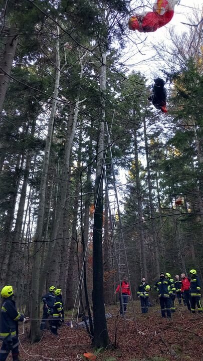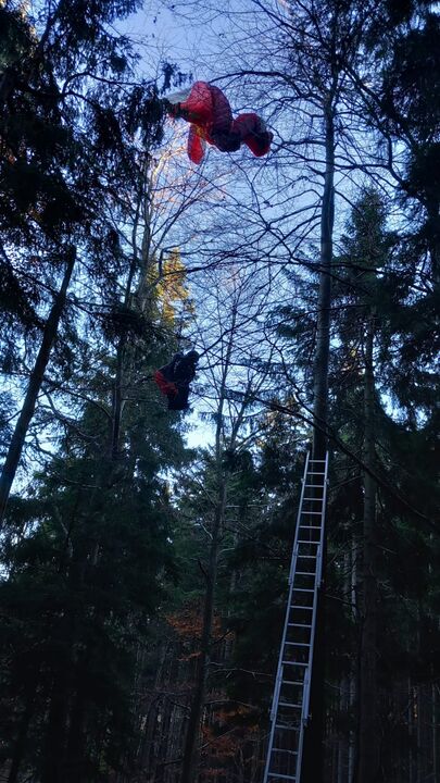 T2 Menschenrettung, unverletzter Paragleiter im Baum.