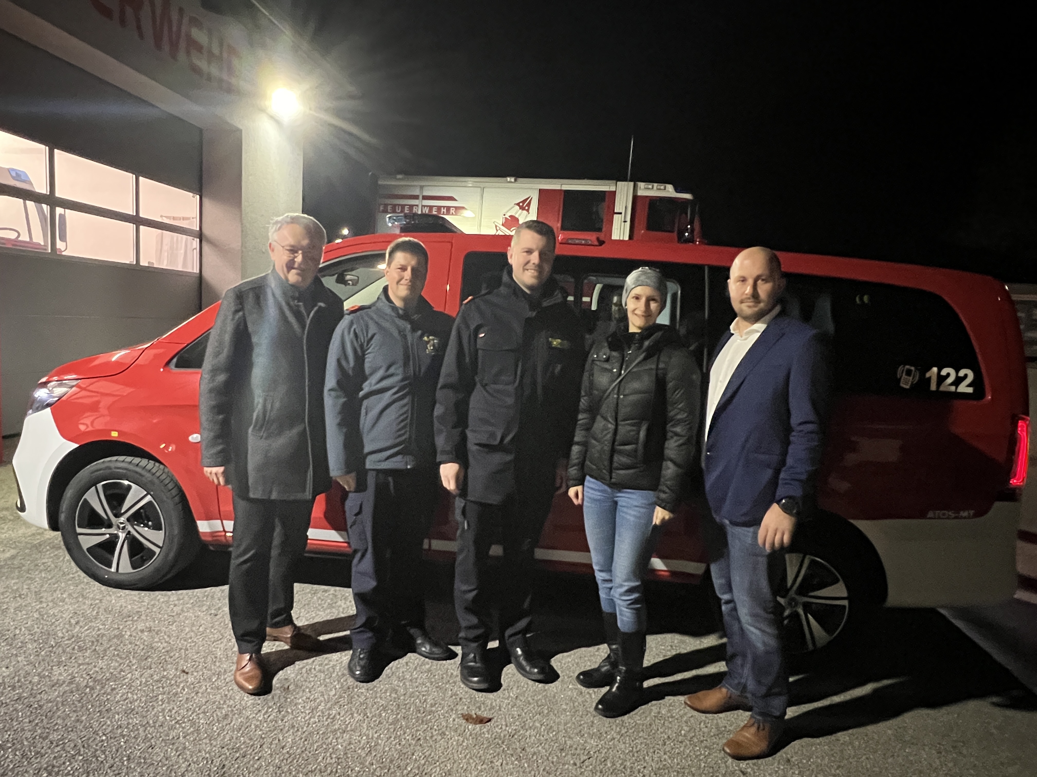 Am Abend folgte dann ein Empfang beim Feuerwehrhaus. Auch Bürgermeister Josef Laferl, seine Stellvertreterin Anja Koffler und Unterabschnittskommandant HBI Markus Zierhofer waren der Einladung gefolgt. Natürlich wurde der neue Mercedes Vito von allen Anwesenden genau begutachtet und die Ausstattung überprüft.