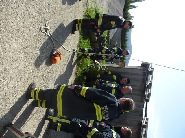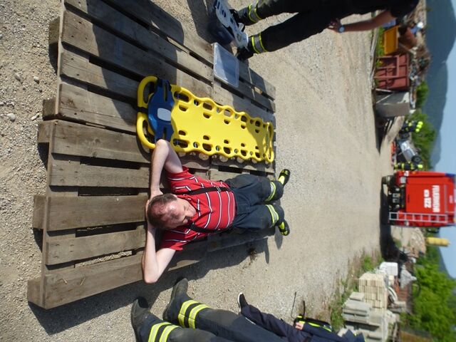Eine Einheit bildete dabei die Handhabung des hydraulischen Rettungsgerätes und des dazugehörigen Equipments. Die Gruppen übten dabei die Rettung von eingeklemmten Personen aus einem Fahrzeug inklusive der Sicherung des Fahrzeuges und der Anwendung verschiedener Techniken. Passend dazu beschäftigte sich die nächste Station mit der richtigen Anlegung der Halskrause und der Anwendung des Spineboards. Ziel dabei war es, einen möglichst schonenden Transport nach der Rettung der betroffenen Person zu ermöglichen. Der letzte Ausbildungspunkt der Übung beschäftigte sich mit der Selbstrettung im Falle eines Brandes. Dabei wurde eine in den Gurt des Atemschutzgerätes integrierte Notfallschleife getestet sowie das Wissen über dafür notwendige Knoten aufgefrischt.
