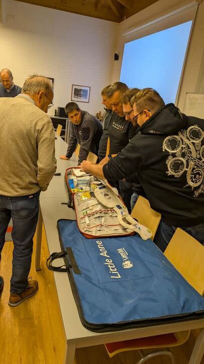 Nach einer kurzen Präsentation wurde das Equipment des Notfallrucksacks besprochen und die Reanimation konnte an einer Puppe trainiert werden.