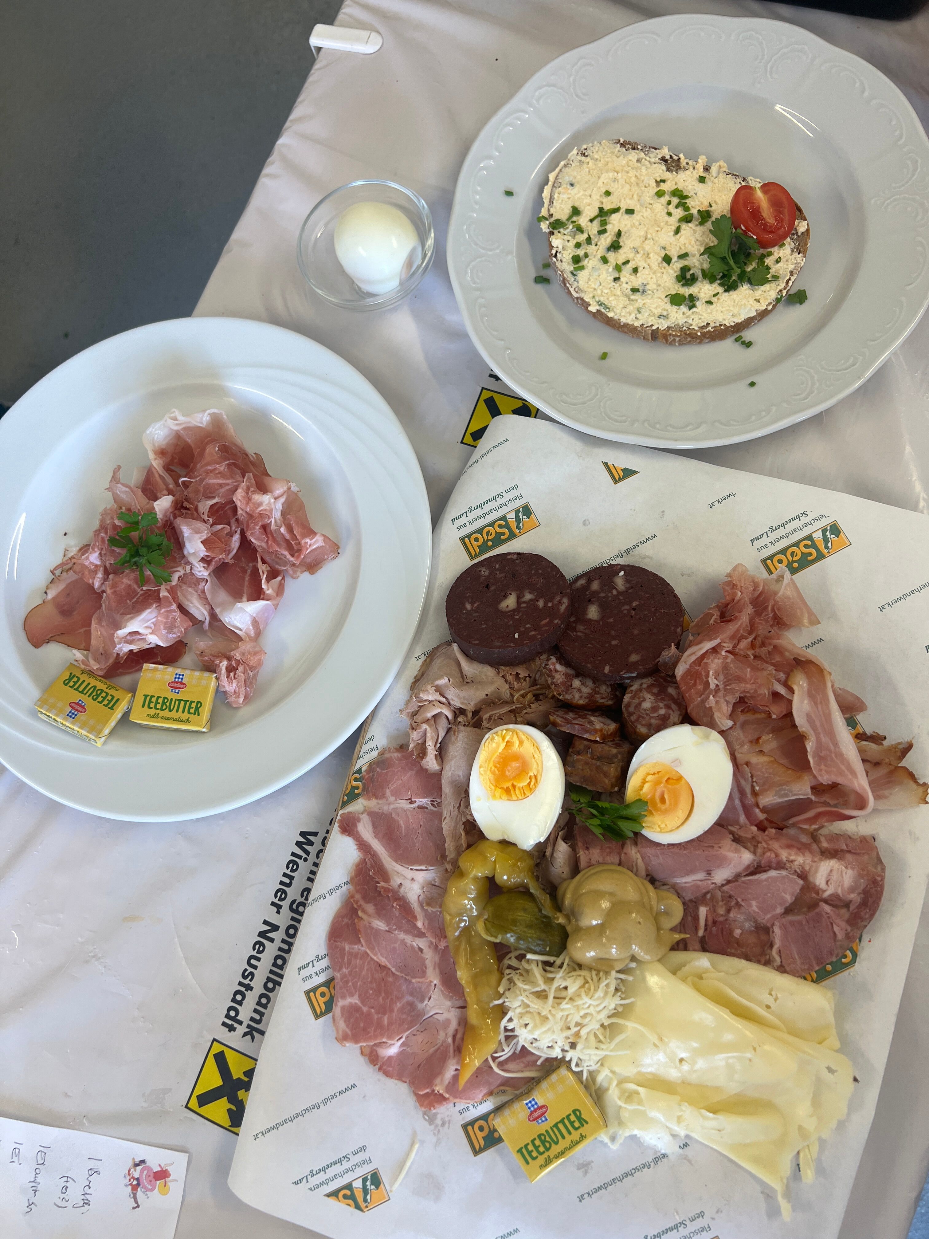 Neben Schilchersturm und Moststurm durften natürlich auch Brettljause, Luftgetrocknetes, Käseteller und verschiedene Aufstriche nicht auf der Speisekarte fehlen. Für den süßen Abschluss war durch selbstgemachte Mehlspeisen auch gesorgt.