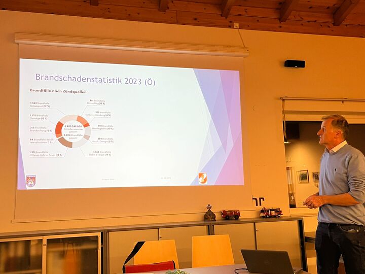EHBM Robert Weik gab dabei einen Einblick in das Thema vorbeugender und betrieblicher Brandschutz. Interessante Punkte wie die Brandschadenstatistik wurden von ihm erläutert.