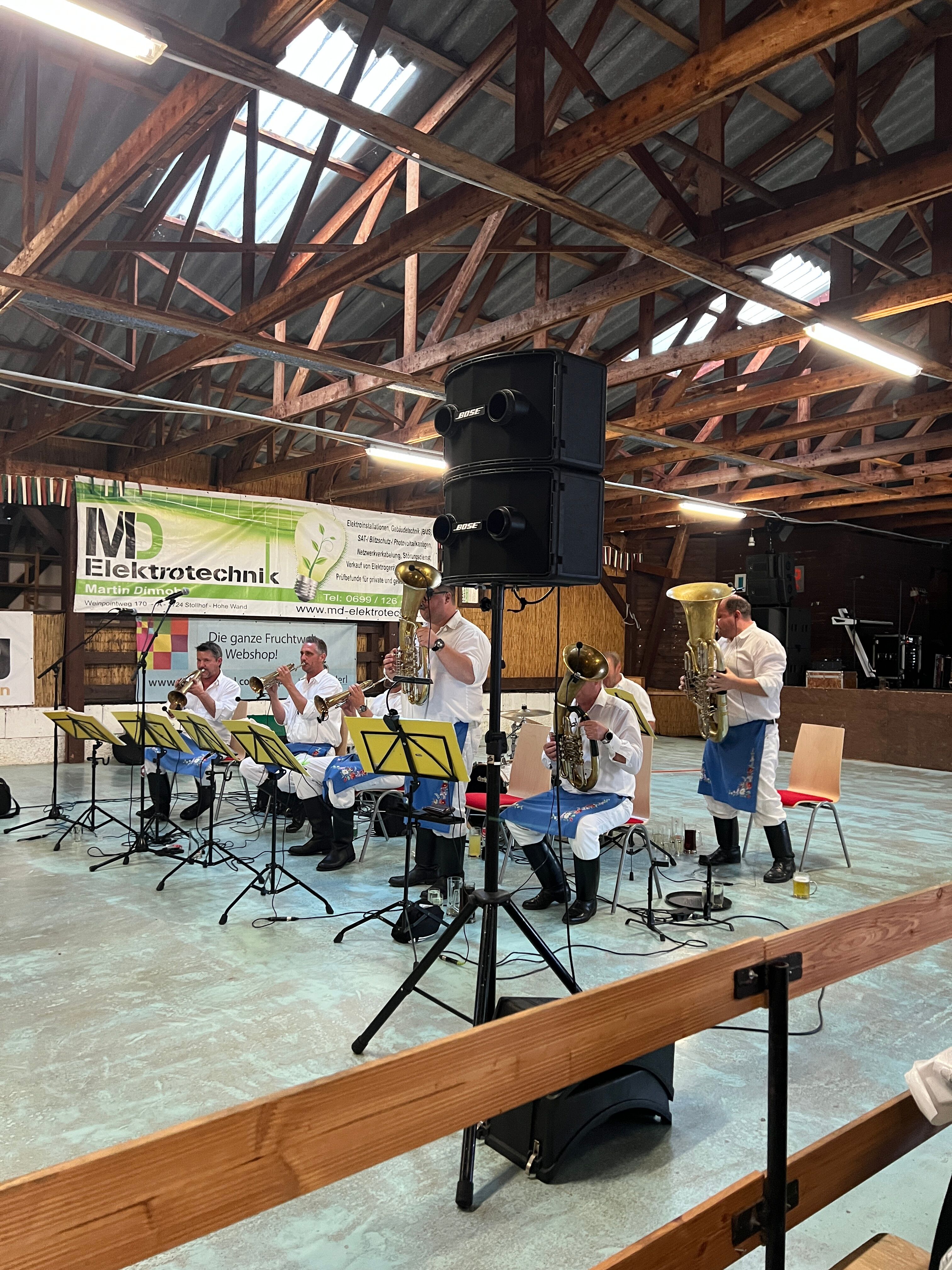 Auch beim Dämmerschoppen wurde durch eine kleine Dorfmusik beste musikalische Unterhaltung geboten und so war die Stimmung am frühen Abend bereits bestens. Ab 21:00 Uhr übernahm „Sunnseitn“ und spielte bis zum Ausklang in den Nachtstunden. In der Bar wurde natürlich auch später noch weitergefeiert.